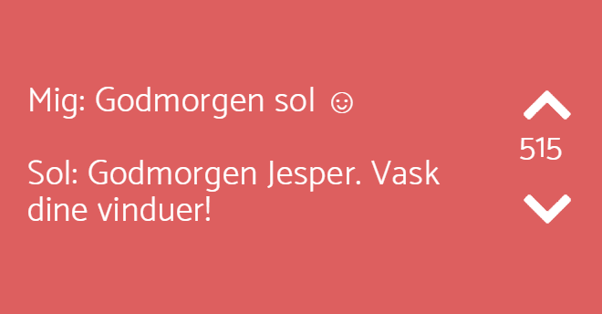 Mig: Godmorgen sol Sol: Godmorgen Jesper. Vask dine vinduer!